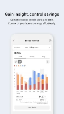 View indoor/outdoor temperature and energy consumption graphs