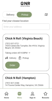 Use the Chick N Roll app to find your nearest location, view our menu, and place an order. Save time by ordering ahead. Earn loyalty points and track your rewards status from within the app.