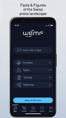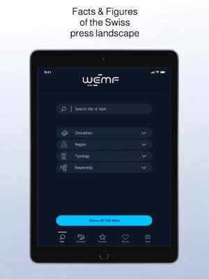 The handy app for an overview of the key figures of the Swiss press landscape. With WEMF Facts & Figures, the latest data on more than 800 Swiss newspapers and magazines is always at your fingertips: circulation figures, reach, and information on readership and place of publication.
