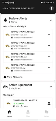 - View machine locations, operating hours, fuel levels and performance metrics