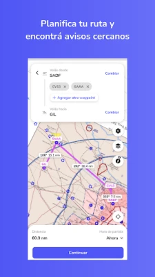 Planificá fácil y rápido: navega a través de las distintas cartas de vuelo y visualizá los espacios aéreos que encontrarás en tu navegación.